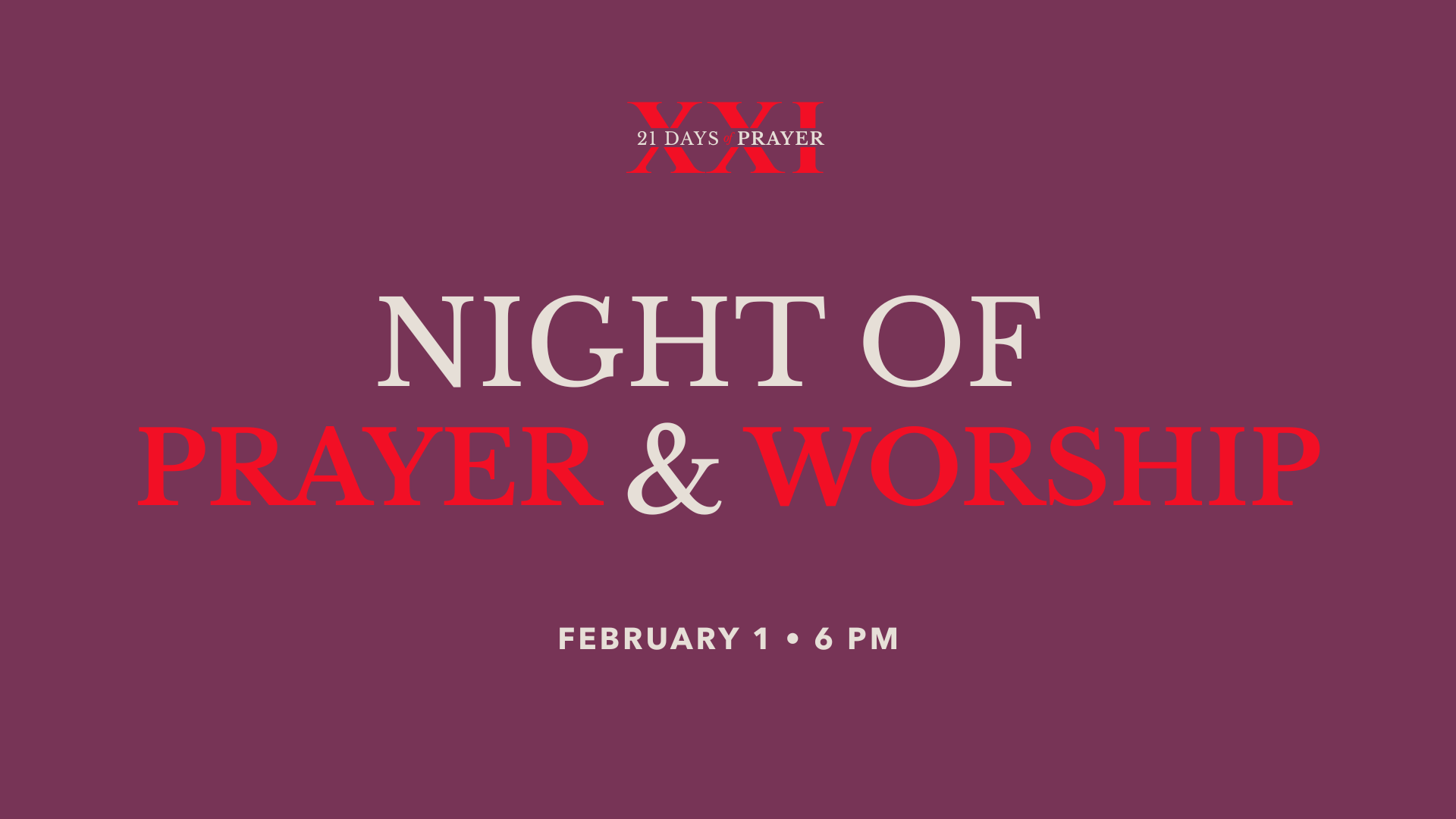 On February 1, join us for the close of our 21 Days of Prayer journey for a Night of Prayer & Worship, seeking the heart of God and lingering in his presence.
