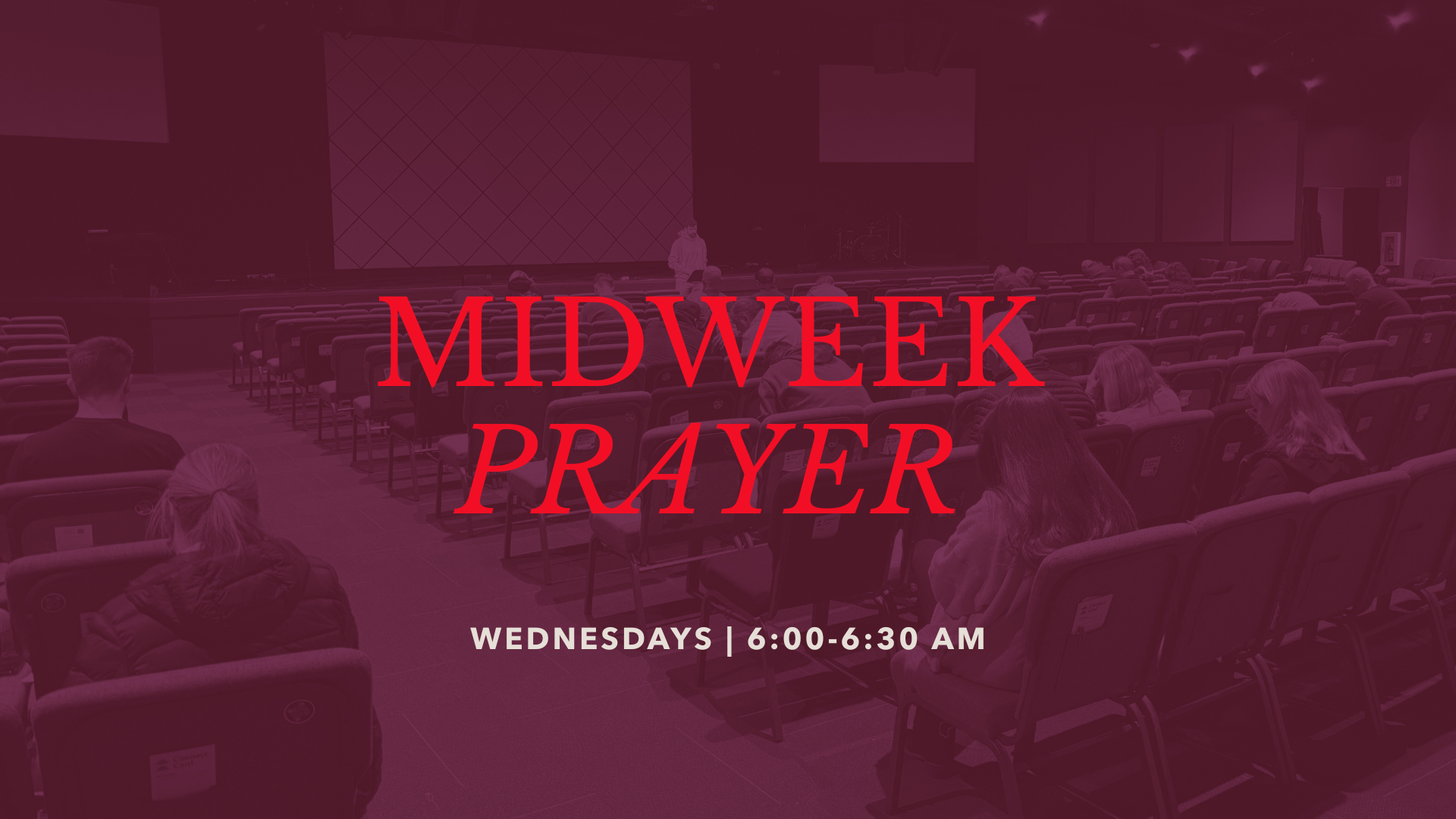 Midweek Prayer is a simple, unhurried 30-minute gathering. Each week centers on a theme, a Scripture, and a prayer prompt that guide us in a shared direction. Together, we pray God’s Word, slow down to listen for how He may be speaking, and spend time praying with and for one another as we submit our day to the Lord.